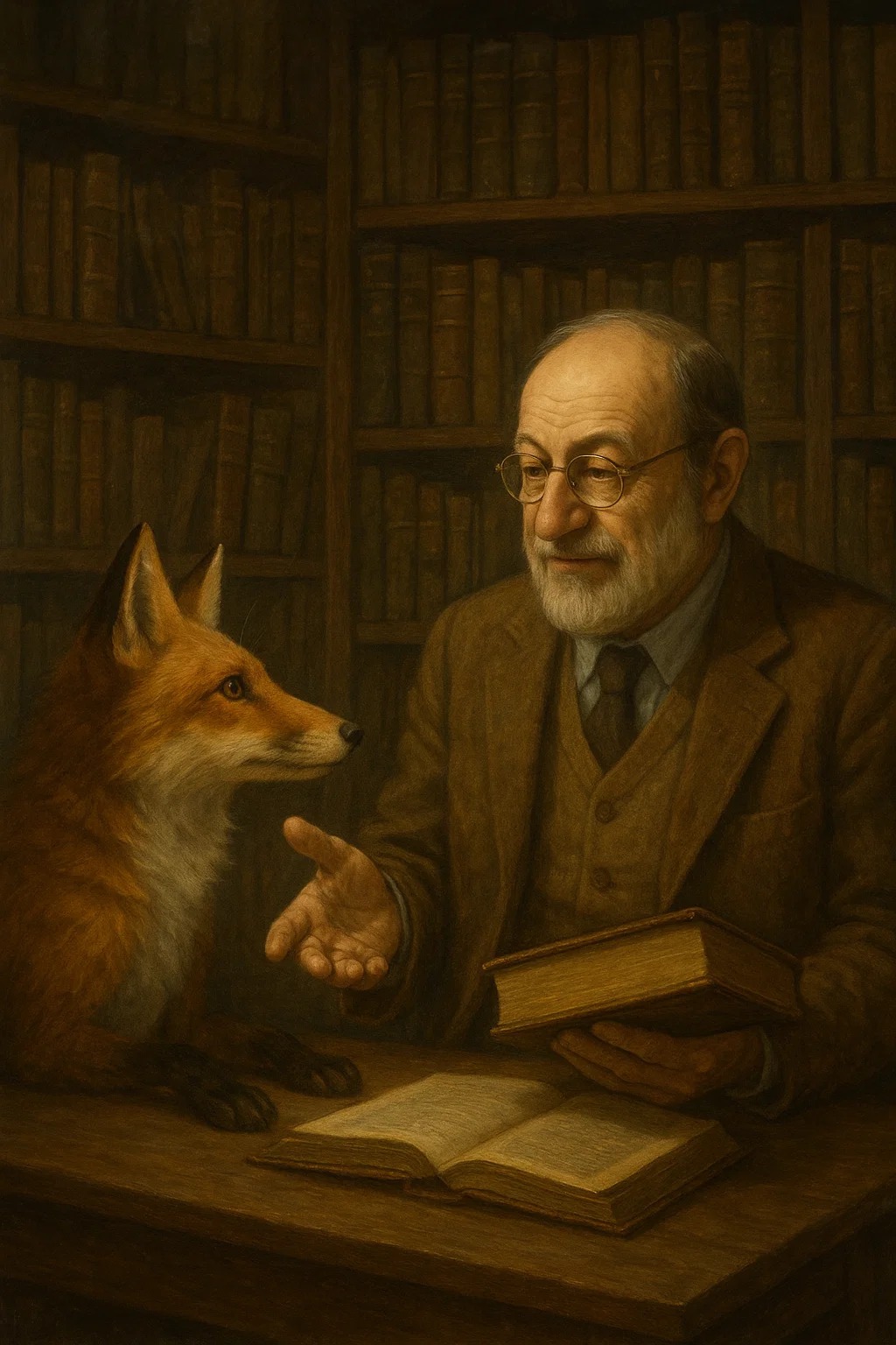في ركن قصي من أبعاد المكتبة، حيث الضوء يتسلل كعادته إلى الأركان من الثنايا بخجل، جلس الثعلب هذي المرة يعتريه هم السؤال لا القراءة، همان يثقلان كاهله مثلما أثقلت الأسفار بروح معانيها على رفوف المكتبة. من يشاهد المكتبة كمن ينصت إلى مقامات صامتة، وكل عنوان فيها يفتح فجوة في وعي المتلقي حينما تلتقم عيناه أحبارها المنسوخة على الورق. قال الثعلب وهو يمرر كفه على غلاف كتاب مهترئ: