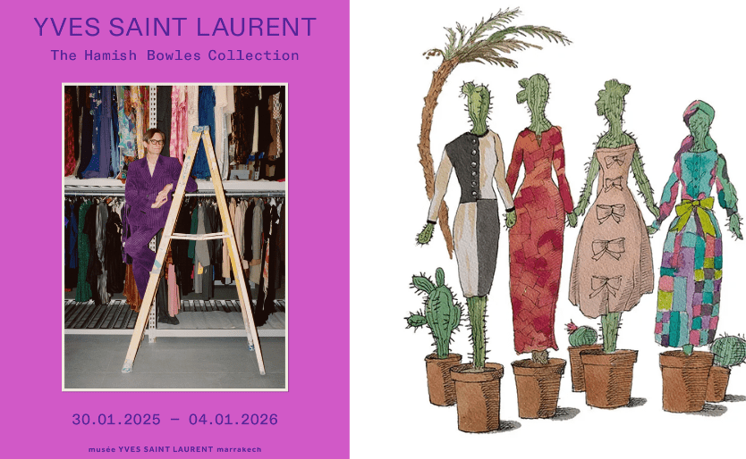 From January 31, 2025, to January 4, 2026, the Yves Saint Laurent Marrakech Museum unveils a new dimension of the work of the little prince of haute couture. The museum will host an exceptional collection on loan from Hamish Bowles, a prominent collector and renowned fashion historian. This carte blanche is an opportunity to explore, for the first time, a collector’s point of view on Yves Saint Laurent’s pieces.