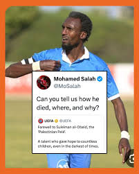 While UEFA remained silent, Al-Obeid’s widow, Doaa Al-Obeid, delivered a poignant reply to Salah: